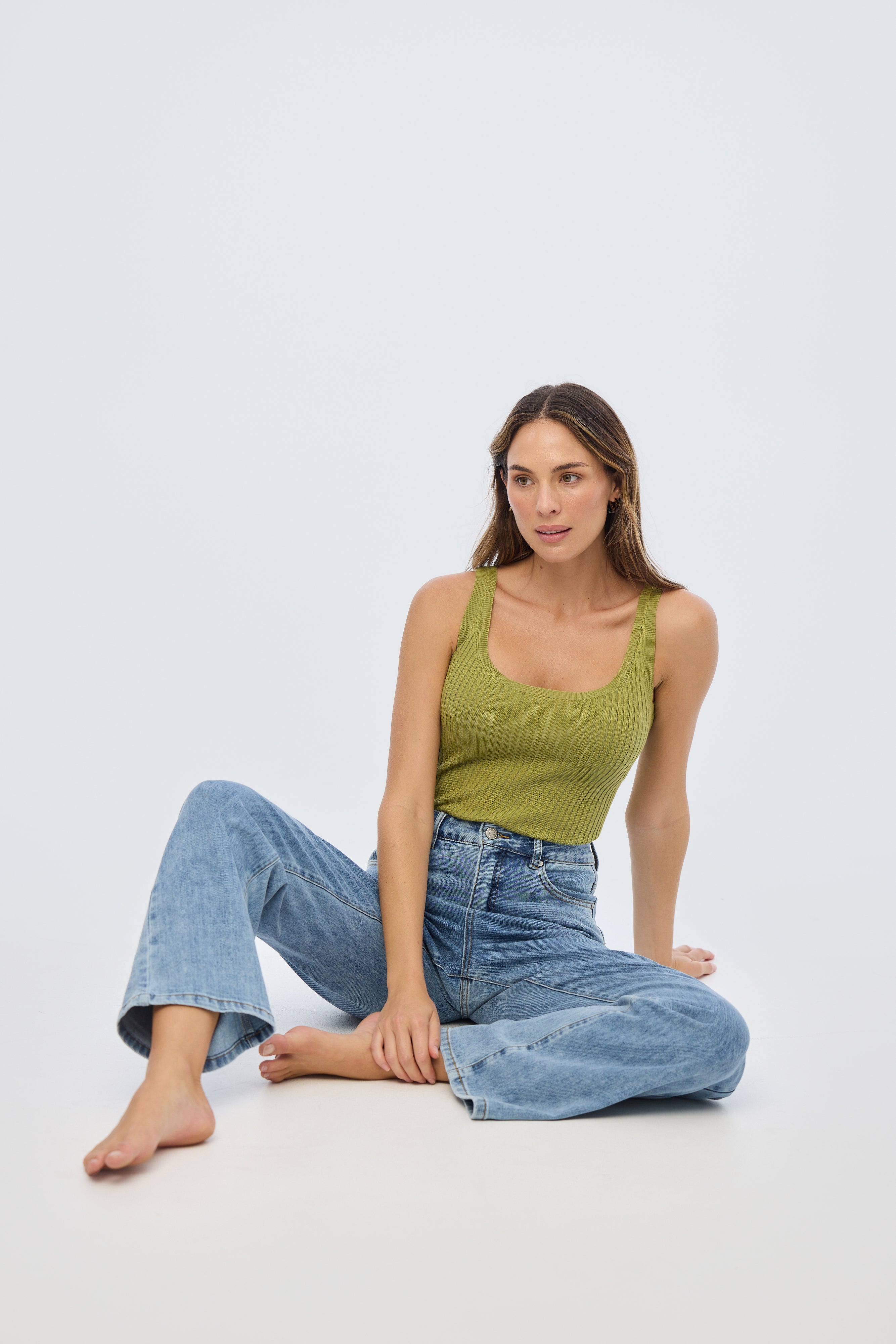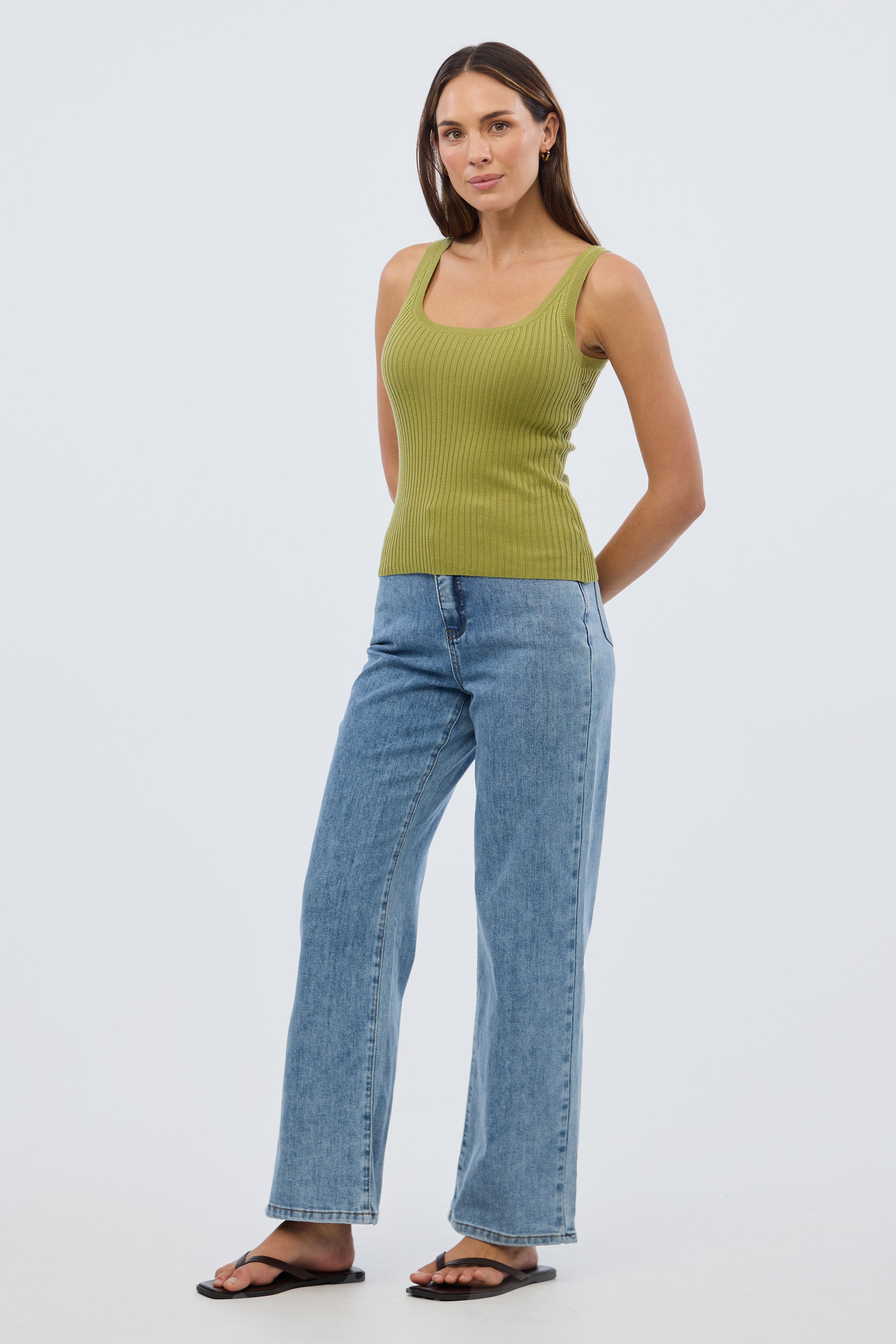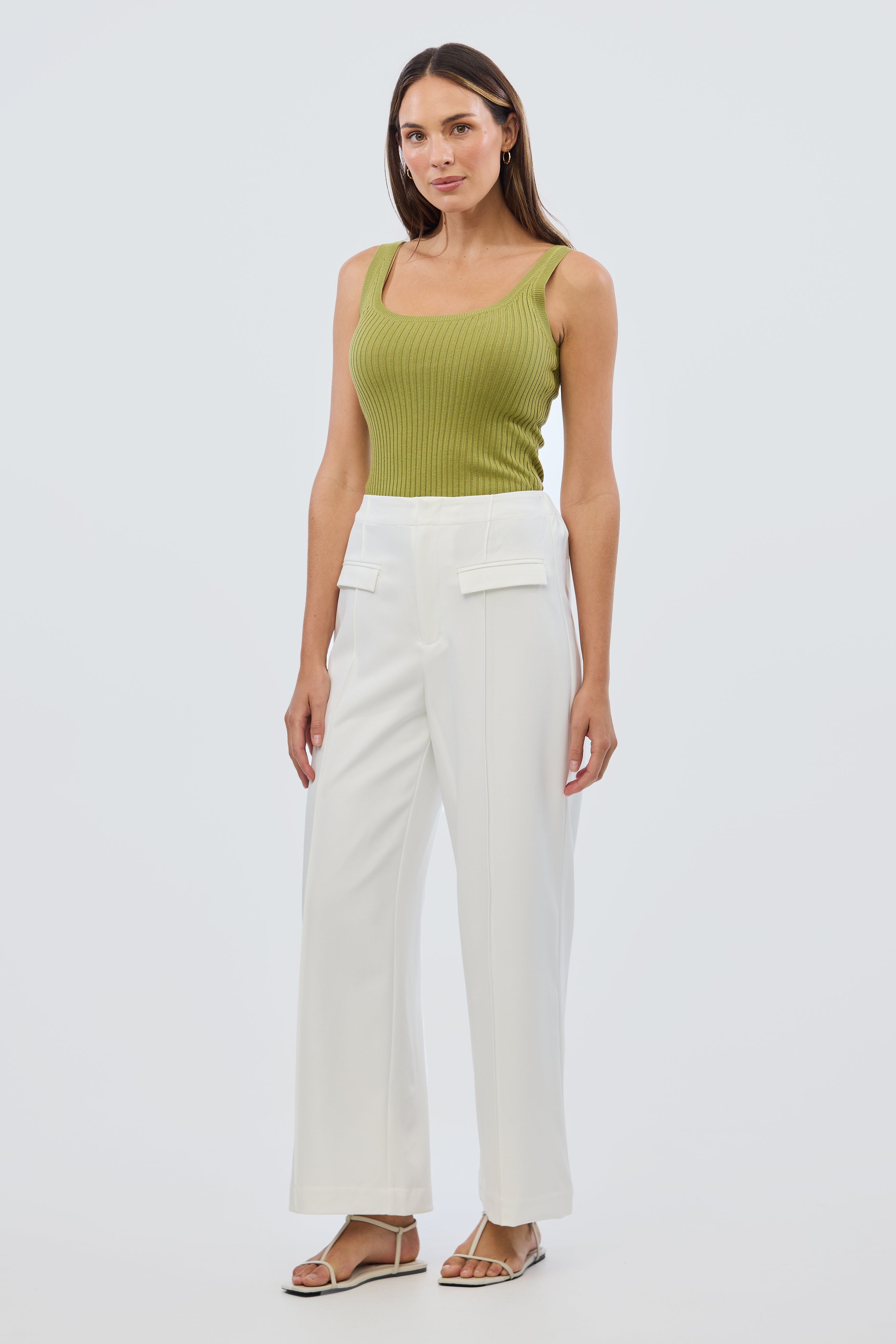 The Scoop Neck Knit Tank in Chartreuse is a versatile layering piece with a flattering fitted silhouette. Crafted from stretch mid-weight rib knit, it features a classic scoop neckline and sleeveless design, making it perfect for pairing with everything from tailored trousers to casual denim.