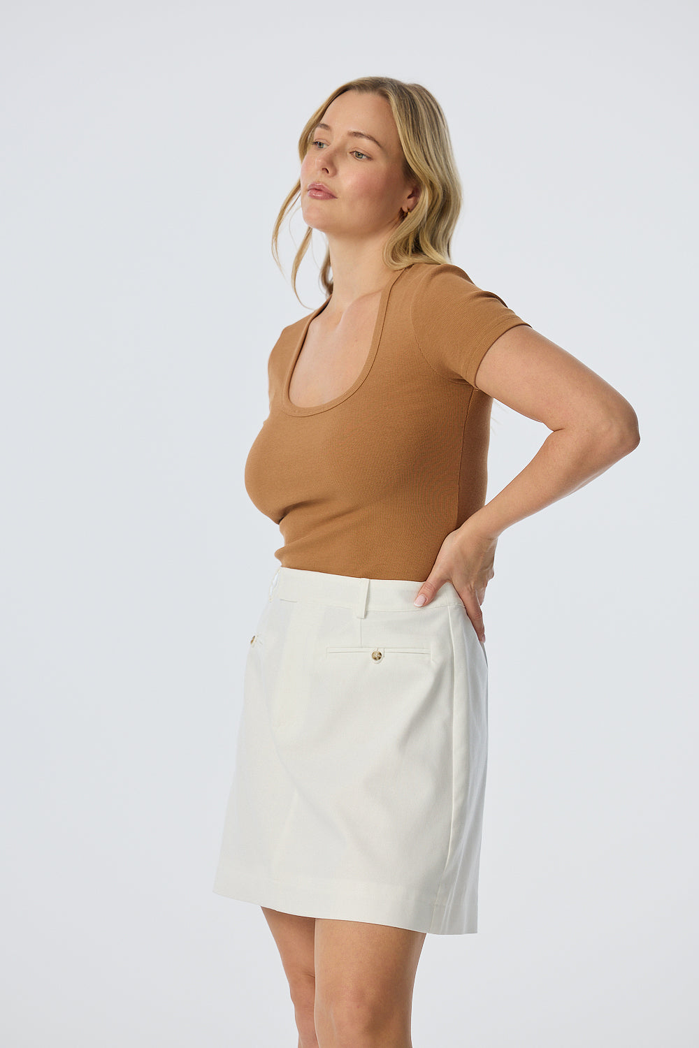 An everyday staple tee, the Scoop Neck Short Sleeve Top in Copper is a fitted, mid-length style designed to pair back effortlessly with everything in your wardrobe.