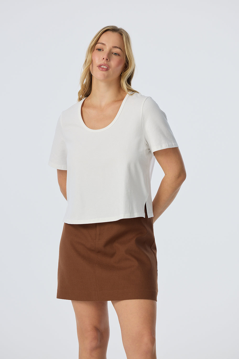 An everyday staple, the Scoop Neck T-Shirt in White is a regular-fit, mid-length style crafted in mid-weight stretch jersey, designed to pair effortlessly with everything in your wardrobe.