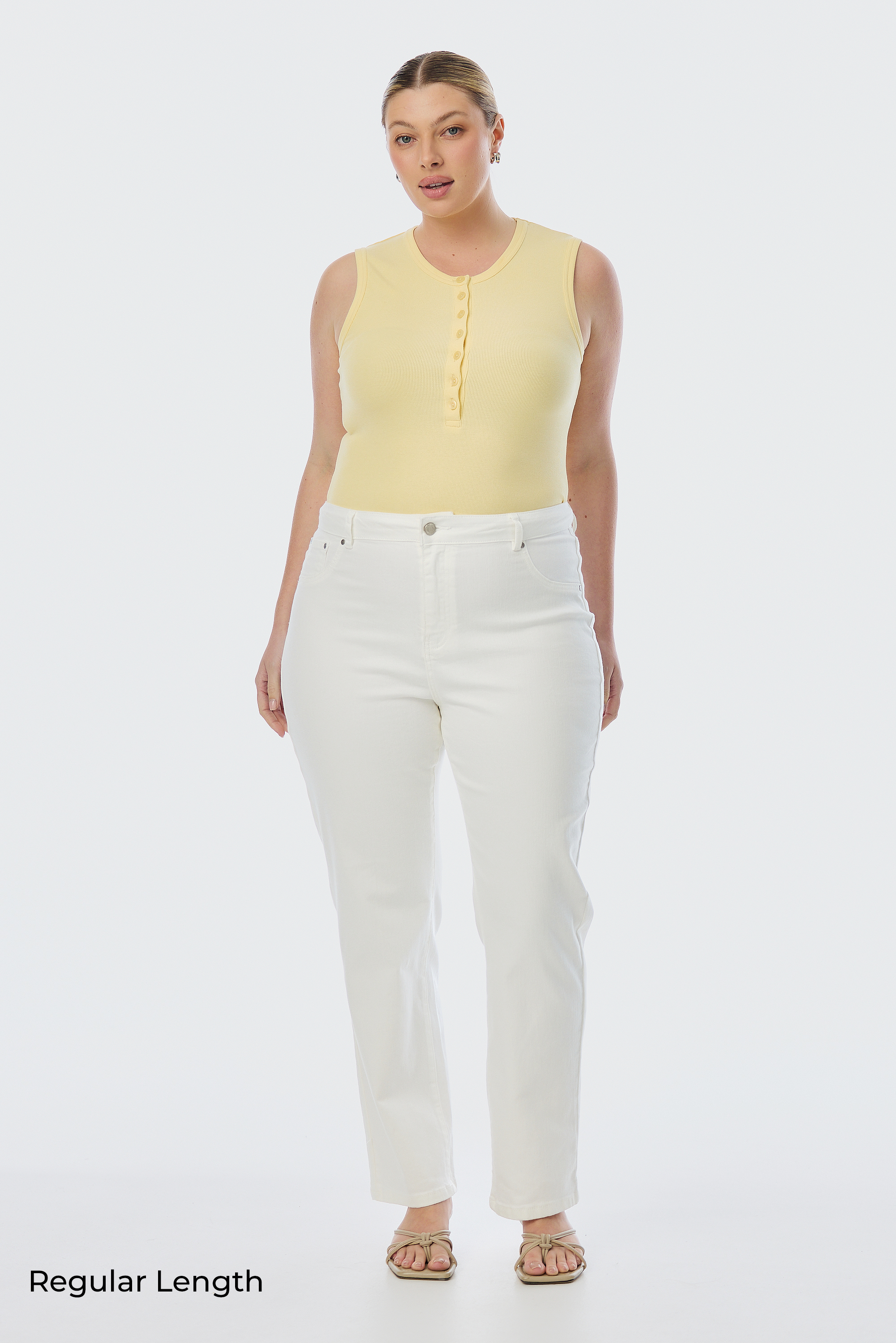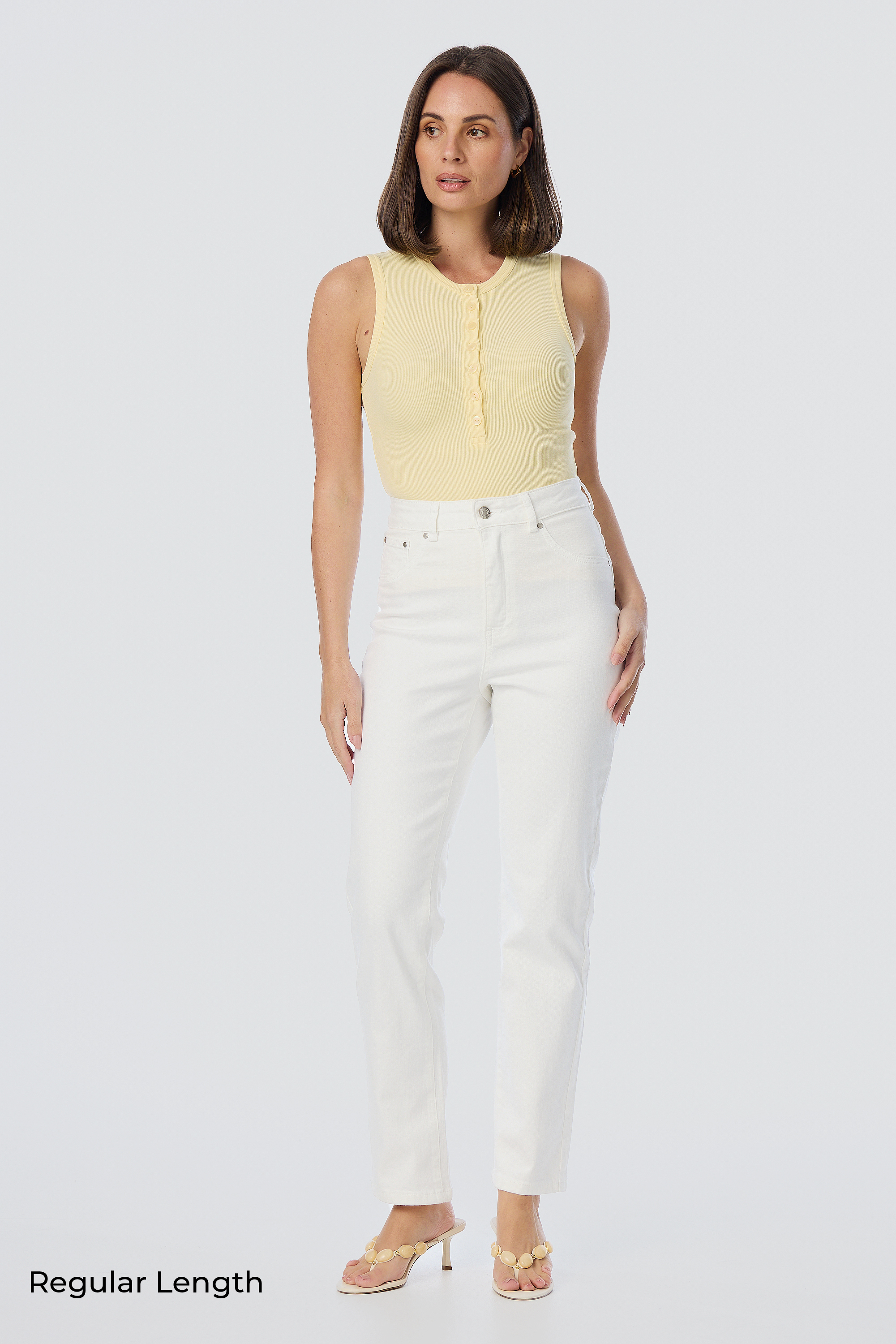 Experience our Signature Slim Leg Jeans in White, crafted for timeless style and effortless ease, tailored to every shape and size. With a touch of stretch for comfort and premium fabric that holds its form, this is denim designed to endure. Find your perfect fit with our two lengths - regular and petite.