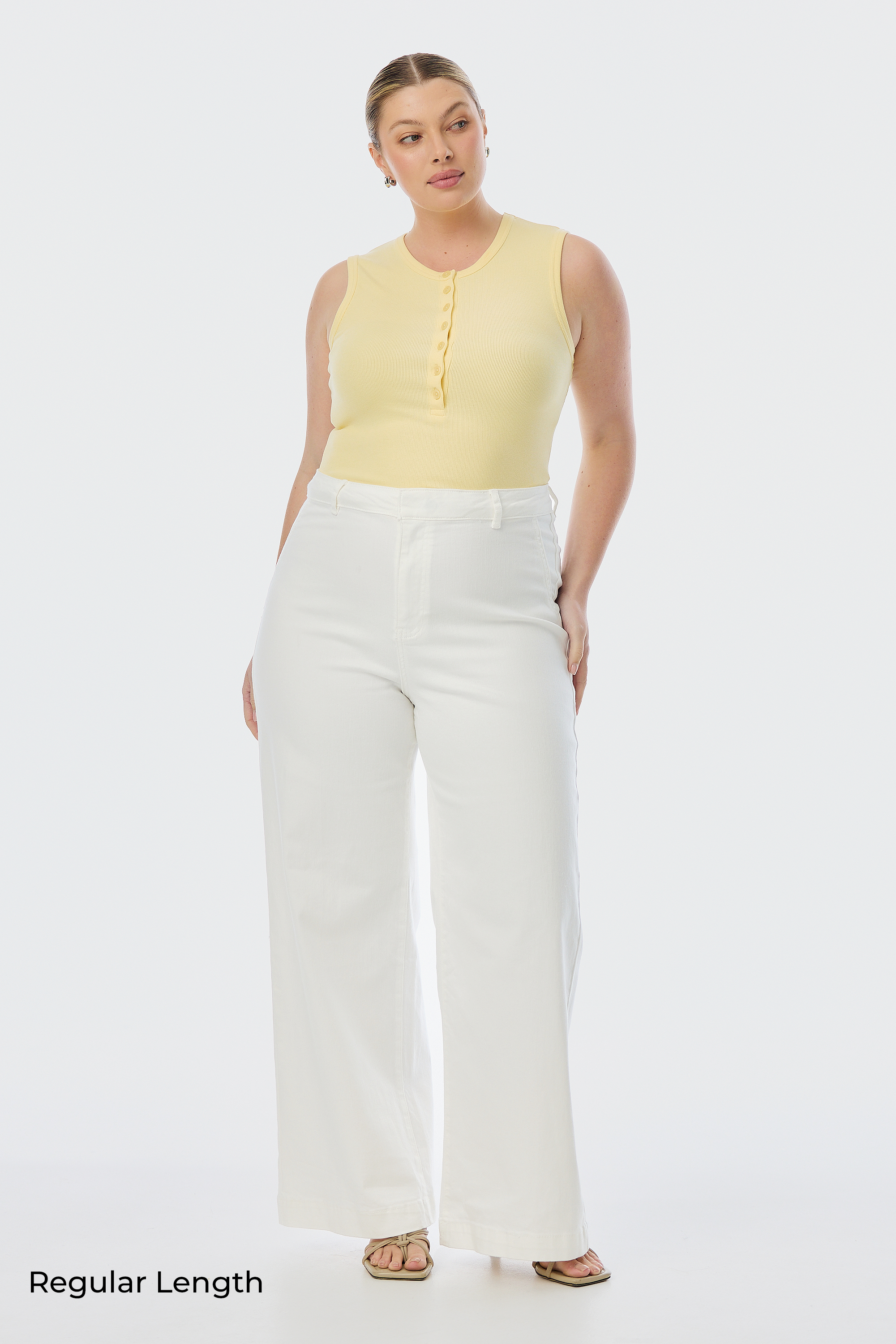 Experience our Signature Wide Leg Jeans in White, crafted for timeless style and effortless ease, tailored to every shape and size. With a touch of stretch for comfort and premium fabric that holds its form, this is denim designed to endure. Find your perfect fit with our two lengths - regular and petite.