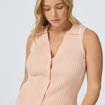 Sleeveless Buttoned Knit Top - Peach Marl