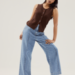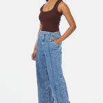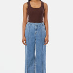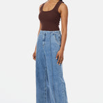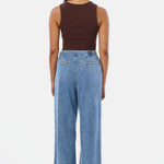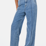 A classic denim wash meets elevated tailoring in the Tailored Pintuck Jeans in Mid Wash Blue. Designed for comfort and shape, they feature front leg pintucks, side elastic panels in the waistband, and a wide leg silhouette.