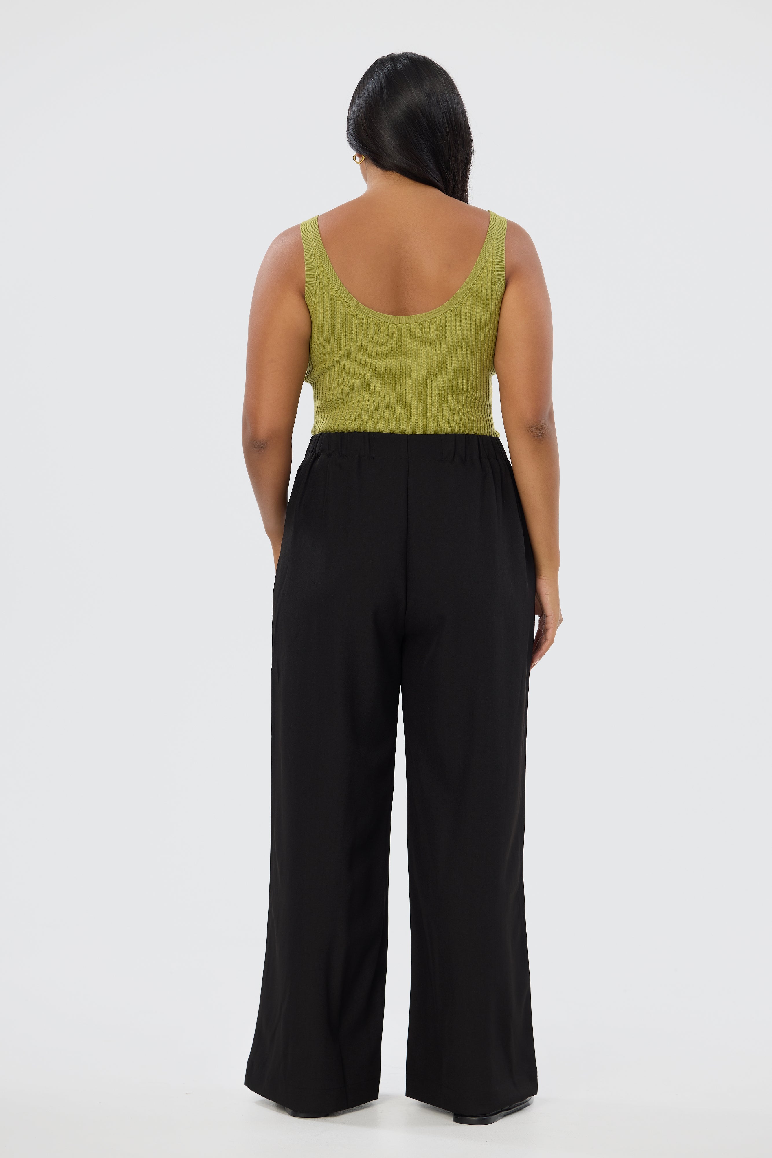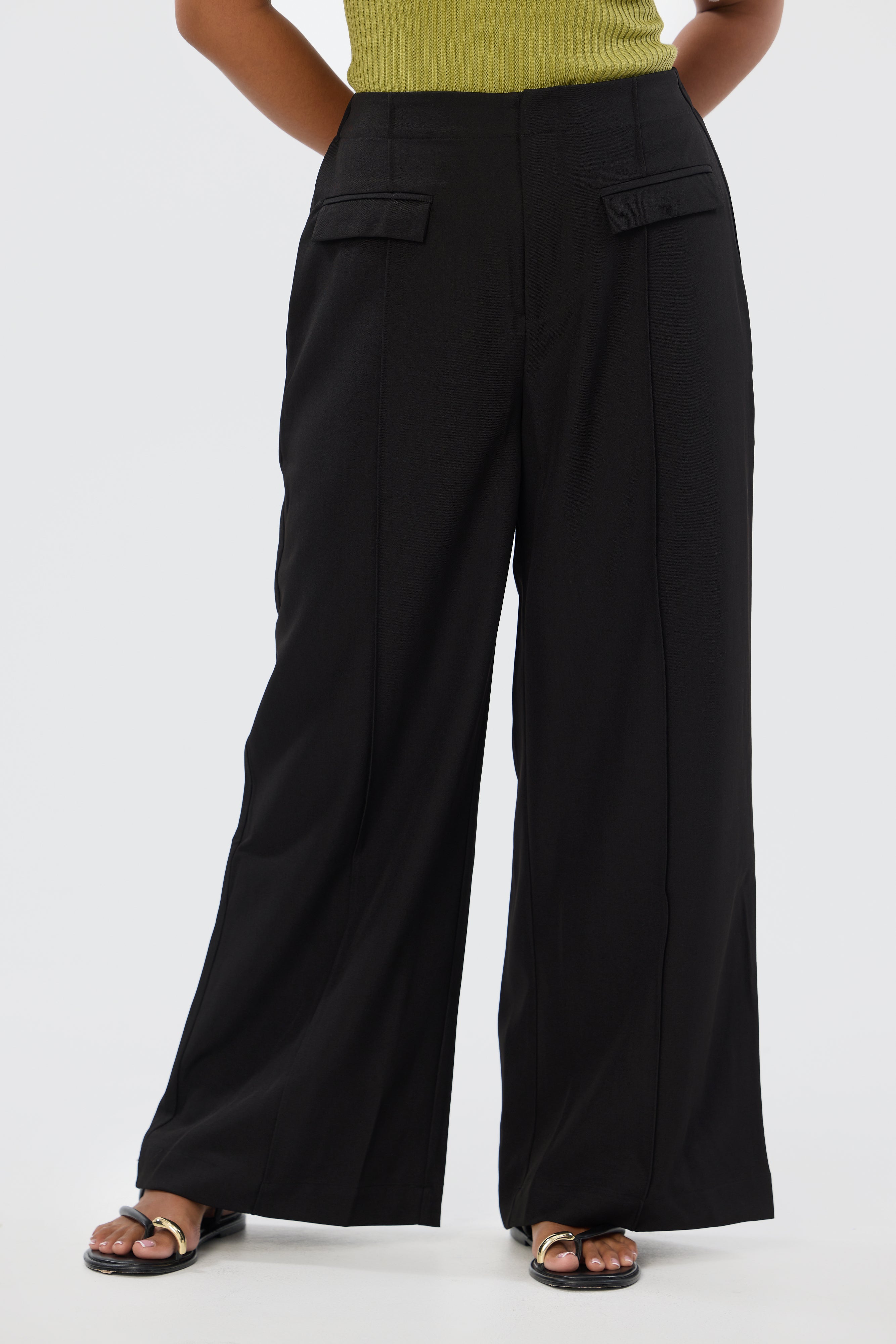 Designed for comfort and ease, the Tailored Pocket Pants in Black feature a high waist with concealed hook-and-bar closure, front fly zipper, and elasticated panels at the back for a perfect fit. These full-length trousers are ideal for pairing with any top in your wardrobe.