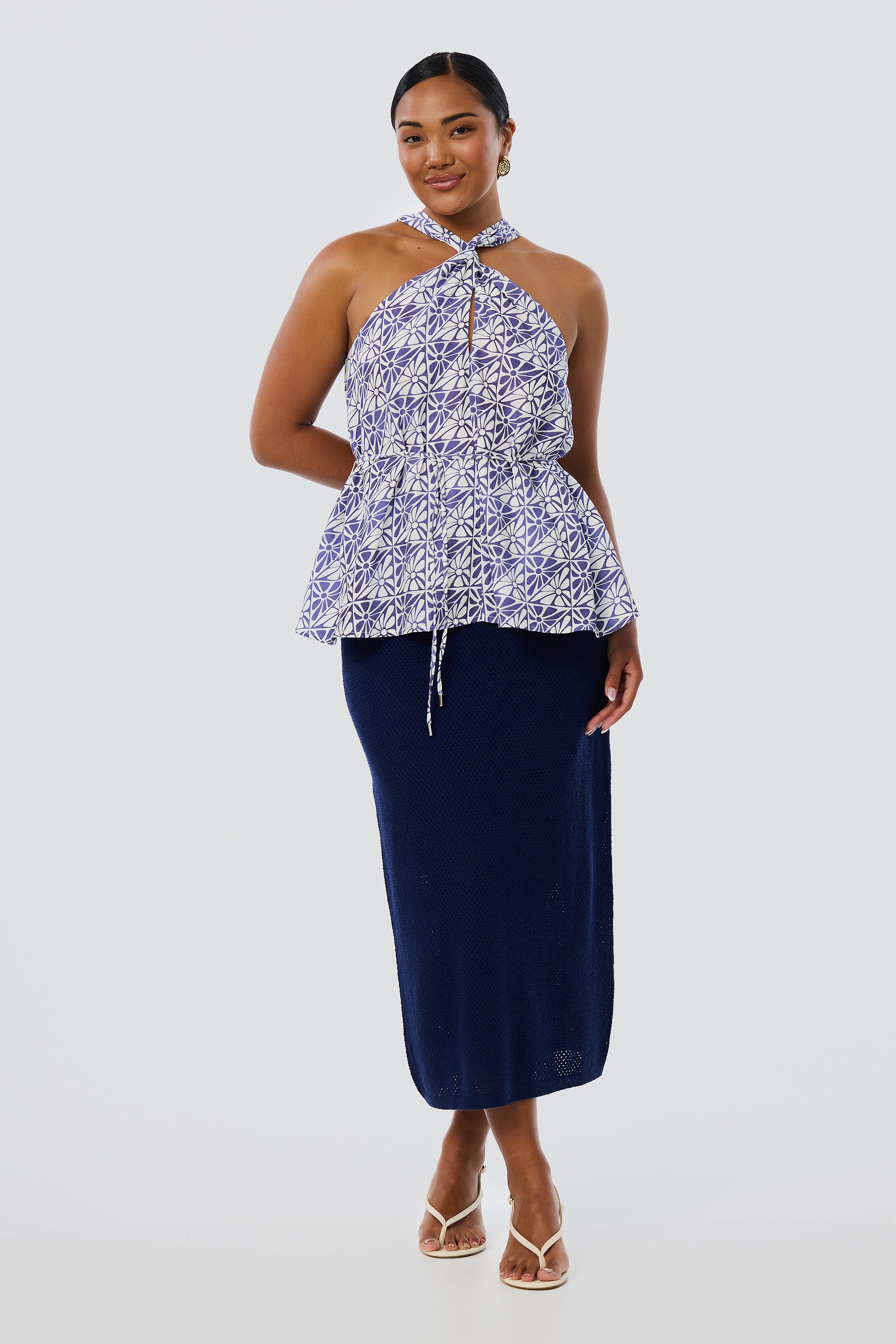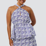 Twist Neck Halter Top - Blue Mosaic (Pre Order)