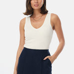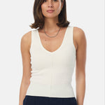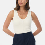 A refined essential designed to streamline your wardrobe. The V-Neck Knit Tank in White features a flattering neckline and centre seam detail that adds subtle structure. Crafted in a mid-weight stretch rib knit, it's fitted yet flexible, perfect for layering or wearing solo from day to night.